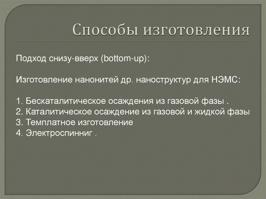 Подход cнизу-вверх (bottom-up):Изготовление нанонитей др. наноструктур для НЭМС: