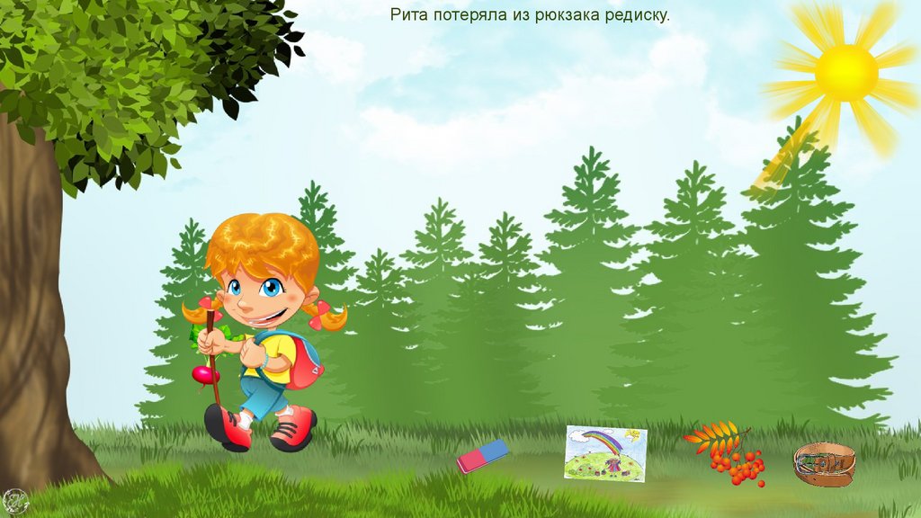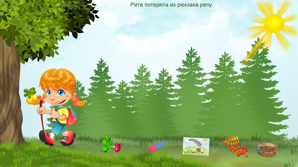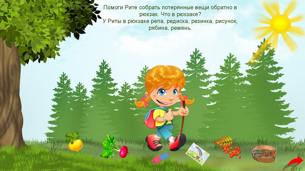 Помоги Рите собрать потерянные вещи обратно врюкзак. Что в рюкзаке?