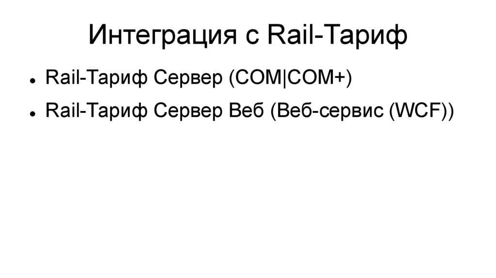 Интеграция с Rail-ТарифRail-Тариф Сервер (COM|COM+)