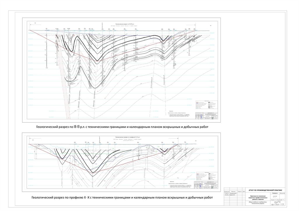 Геологический разрез по 18-19 р.л. с техническими границами и календарным планом вскрышных и добычных работОТЧЕТ ПО ПРОИЗВОДСТВЕННОЙ ПРАКТИКЕ