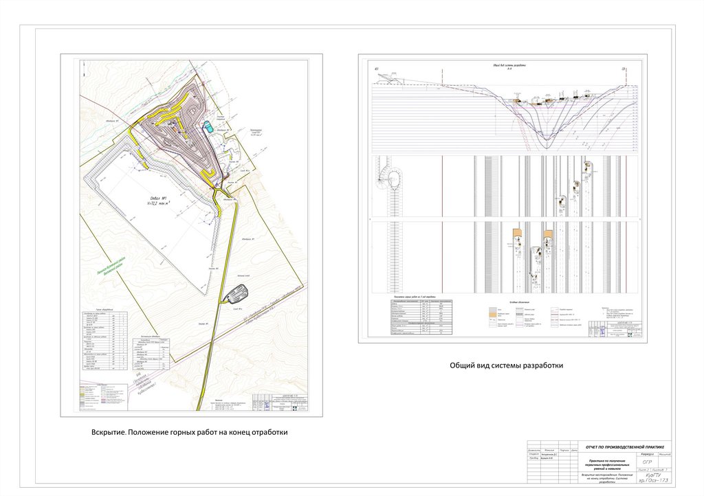 Общий вид системы разработкиВскрытие. Положение горных работ на конец отработки