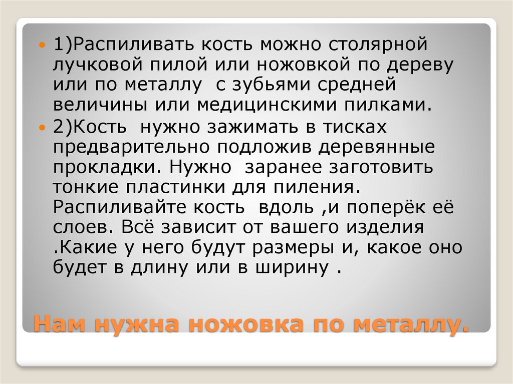 1)Распиливать кость можно столярнойлучковой пилой или ножовкой по дереву