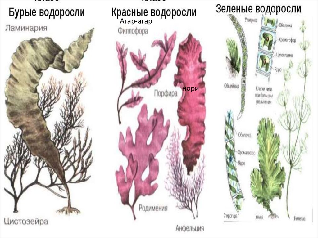 (нори), грациллярия, филлофора (агар-агар).