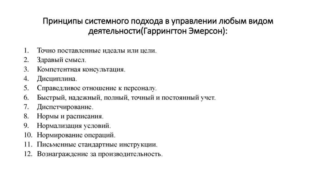 Принципы системного подхода в управлении любым видомдеятельности(Гаррингтон Эмерсон):