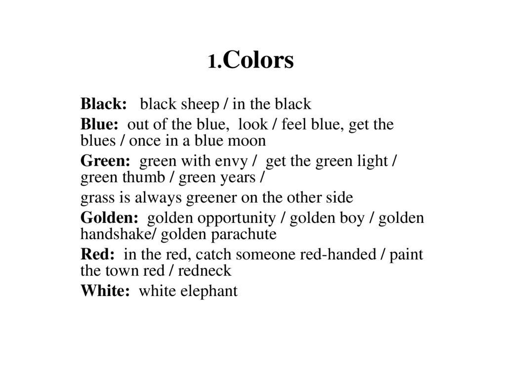 1.ColorsBlack: black sheep / in the black