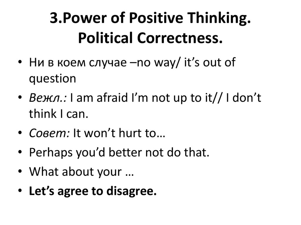 3.Power of Positive Thinking.Political Correctness.
