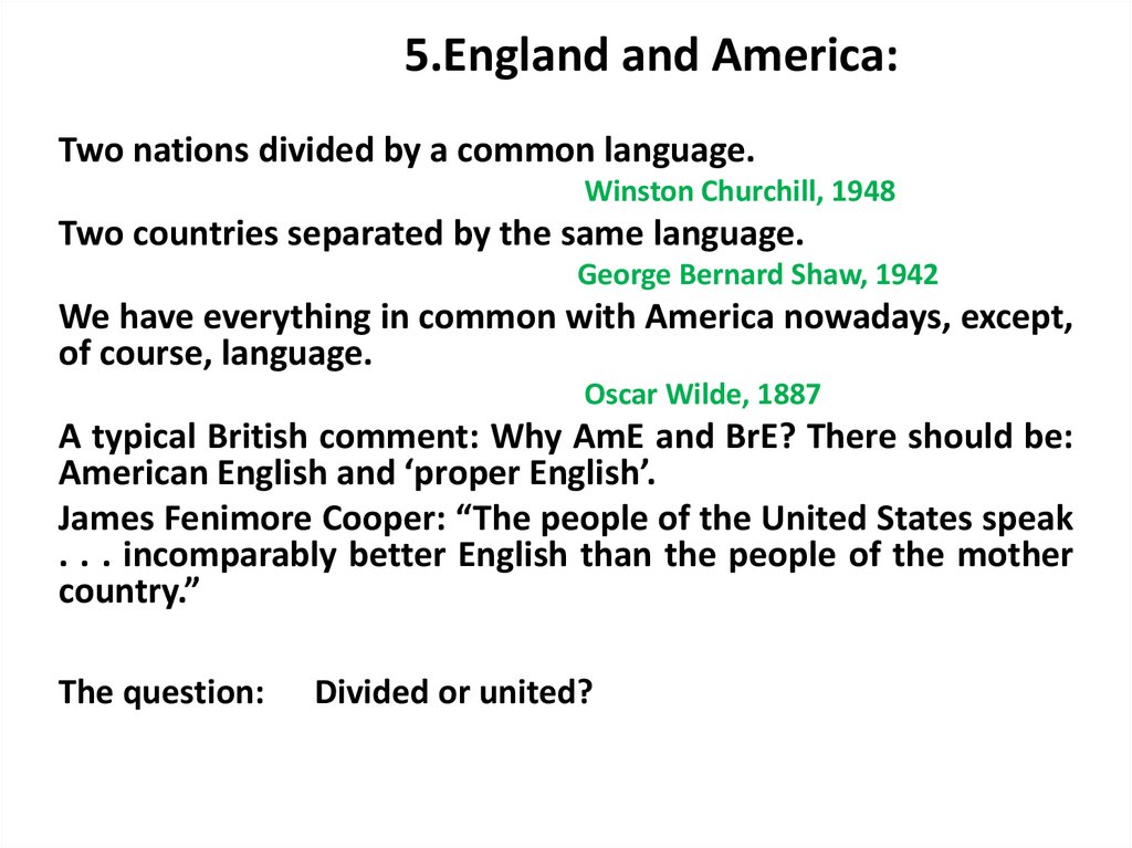 5.England and America:Two nations divided by a common language.