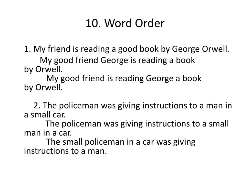 10. Word Order1. My friend is reading a good book by George Orwell.