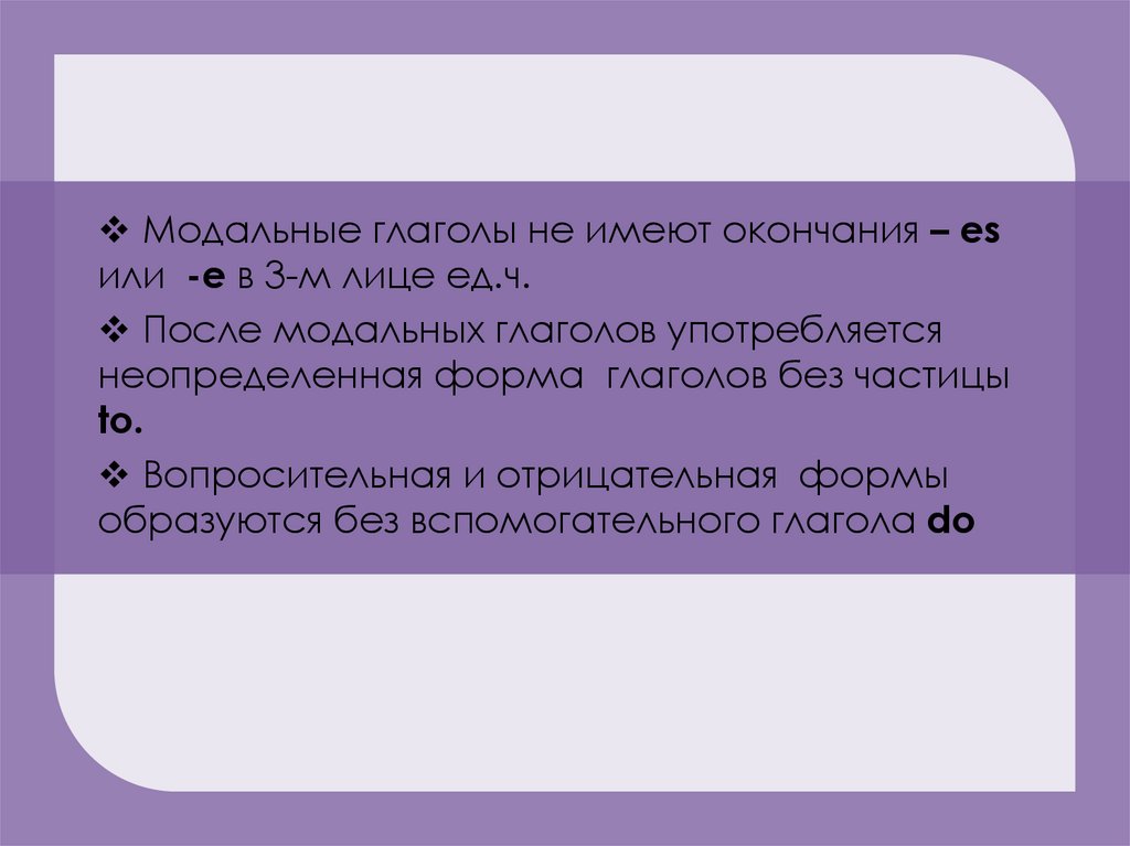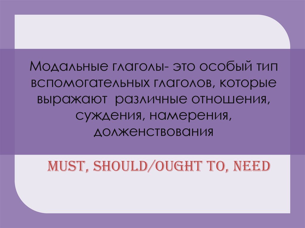 Модальные глаголы- это особый типвспомогательных глаголов, которые
