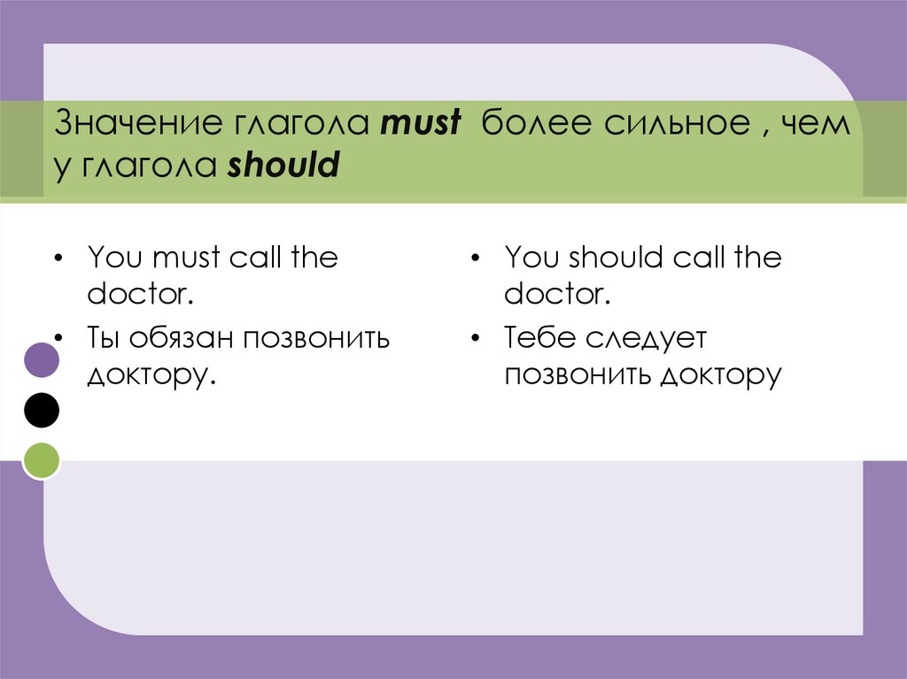 Значение глагола must более сильное , чему глагола should