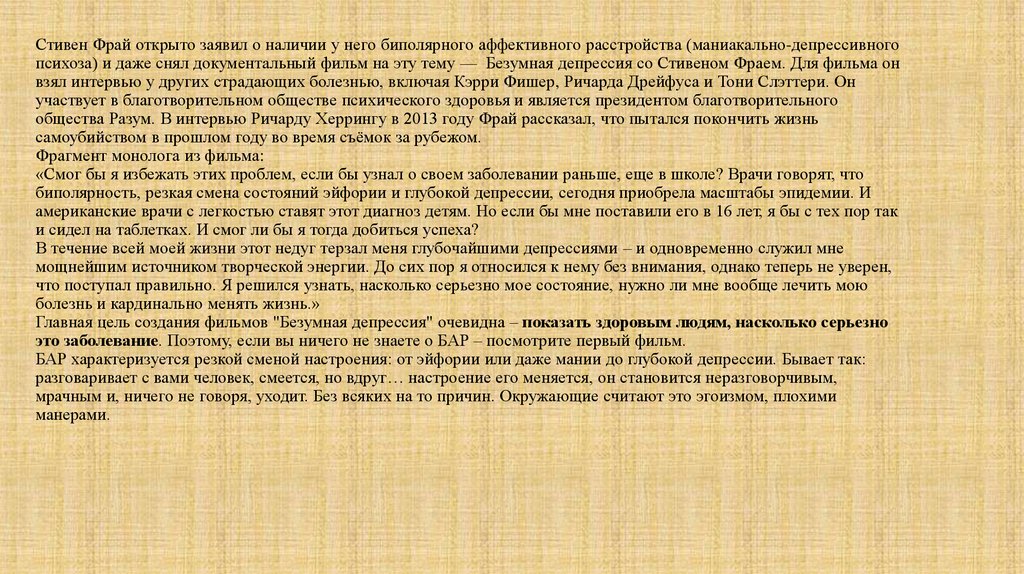 Сти́вен Джон Фрай и биполярное аффективноерасстройство