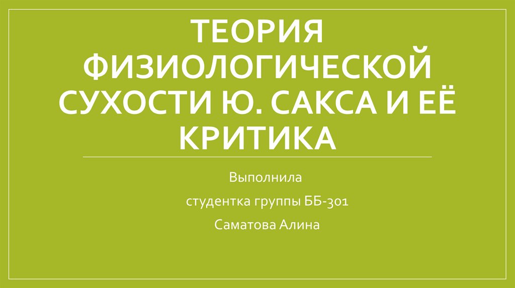 Теория физиологической сухости Ю. Сакса и её критика