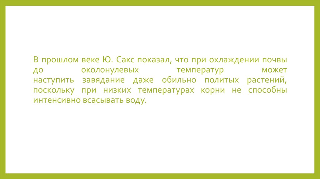 В прошлом веке Ю. Сакс показал, что при охлаждении почвыдо