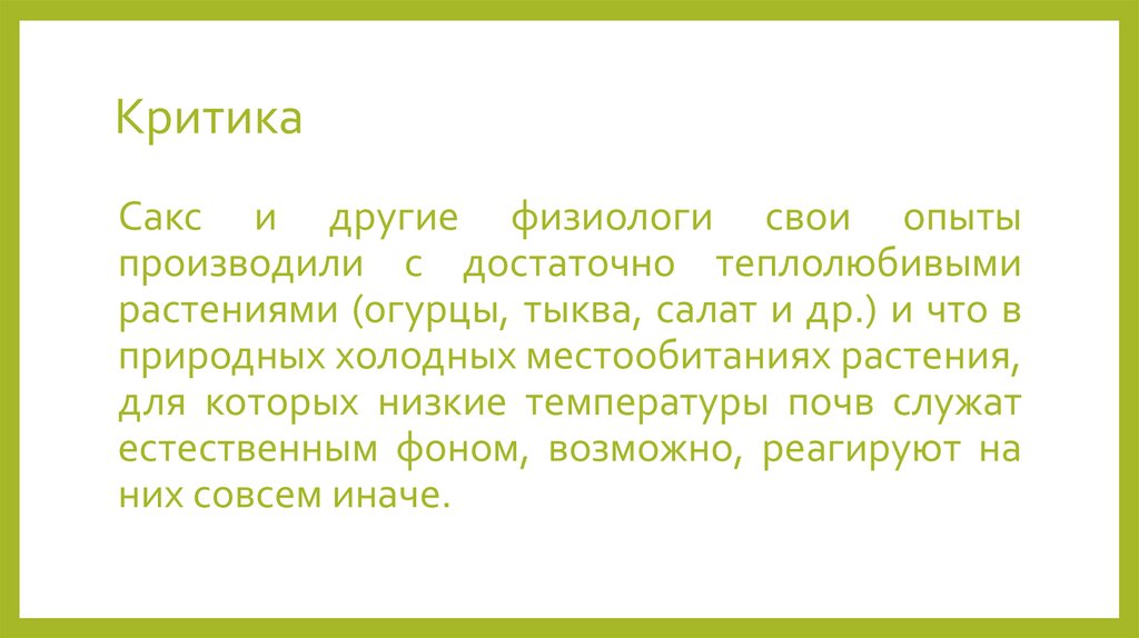 КритикаСакс и другие физиологи свои опыты