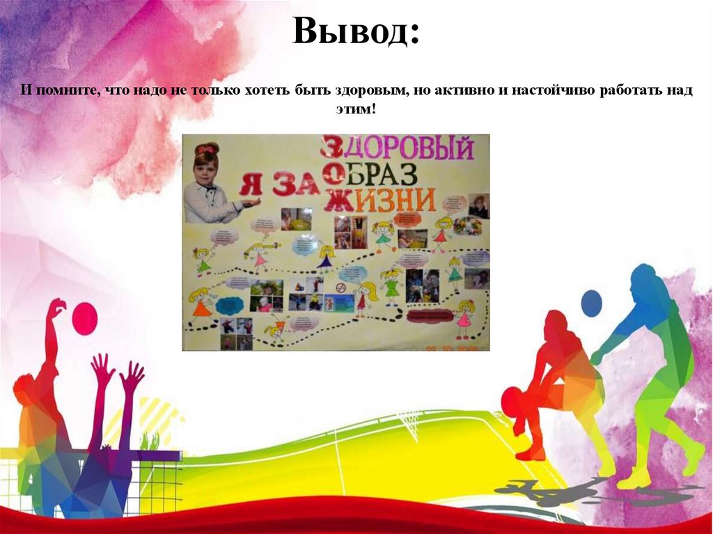 Вывод:И помните, что надо не только хотеть быть здоровым, но активно и настойчиво работать над