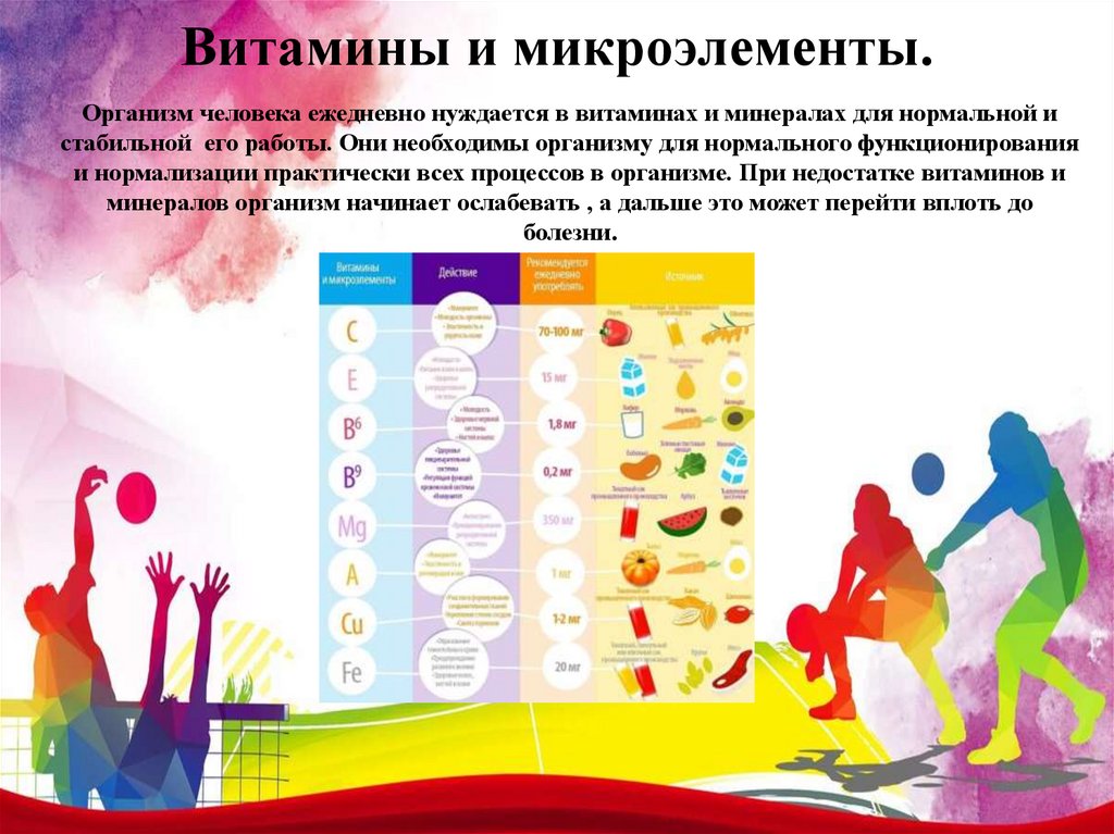 Витамины и микроэлементы.Организм человека ежедневно нуждается в витаминах и минералах для нормальной и