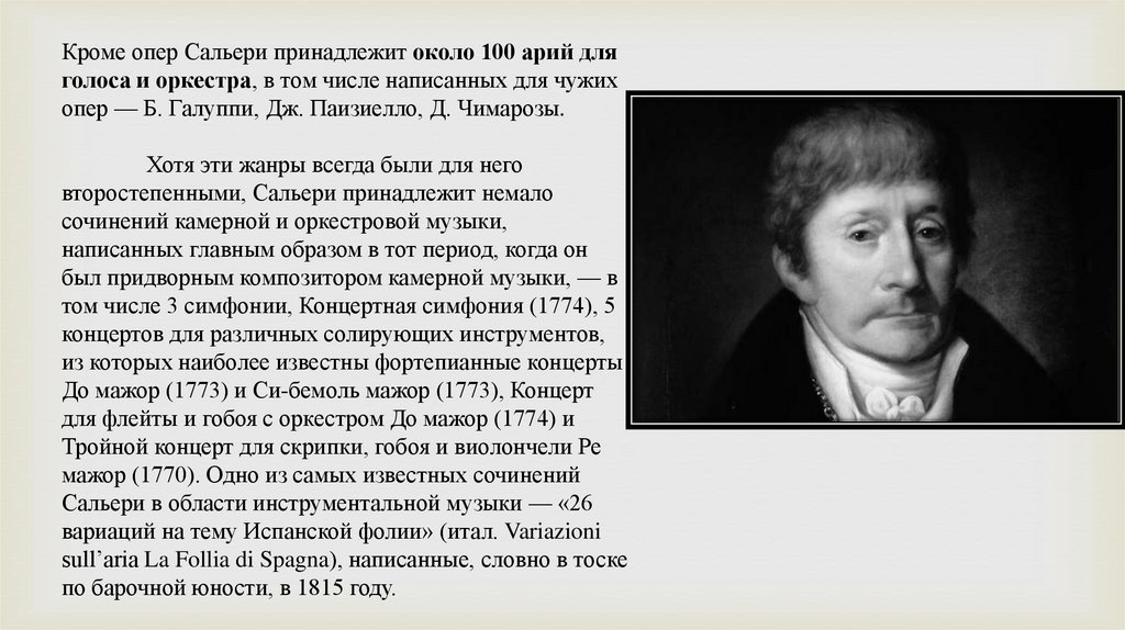 инструментальных и вокальноинструментальных сочинений, Сальери был