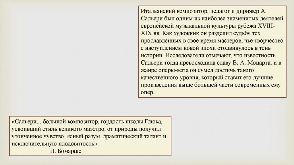 его современников, Сальери, как и многие другие композиторы XVIII века,