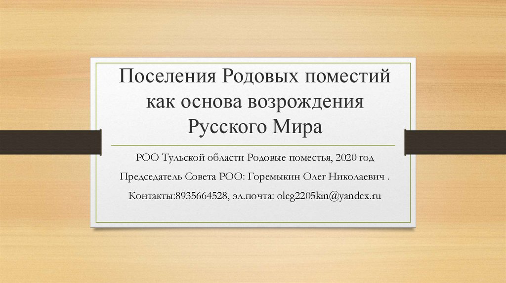 Поселения Родовых поместий как основа возрождения Русского Мира