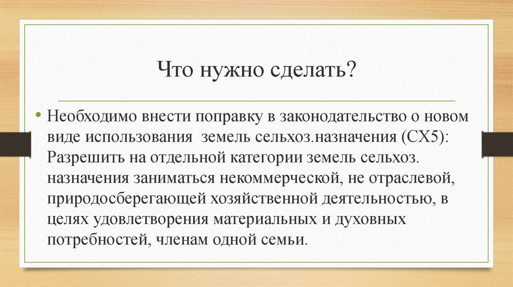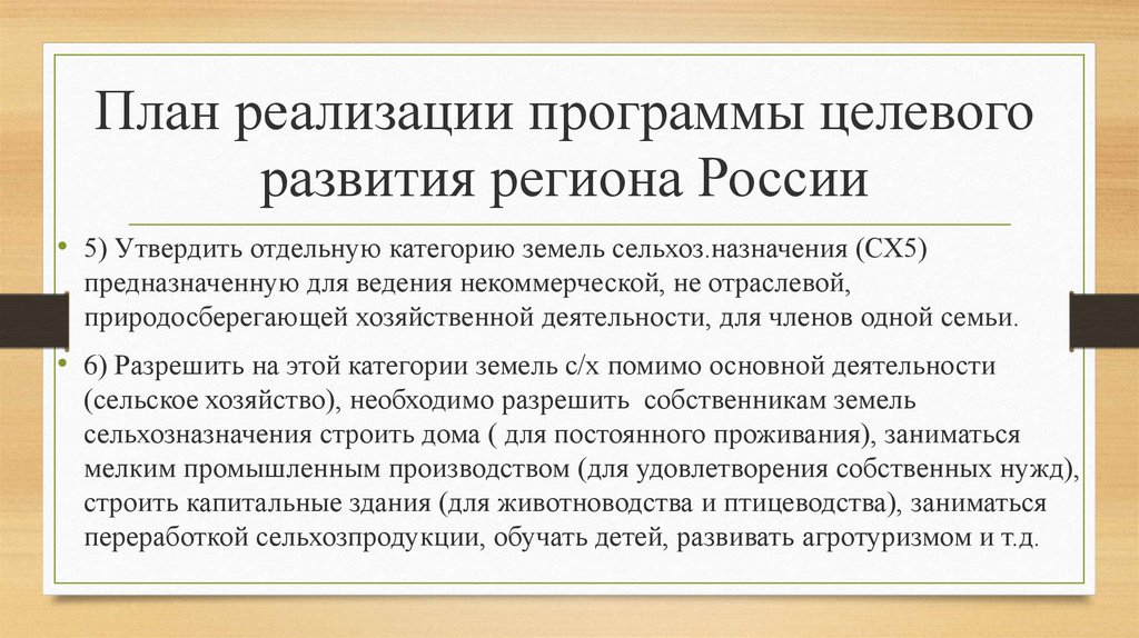 • 6) Разрешить на этой категории земель с/х помимо основной деятельности