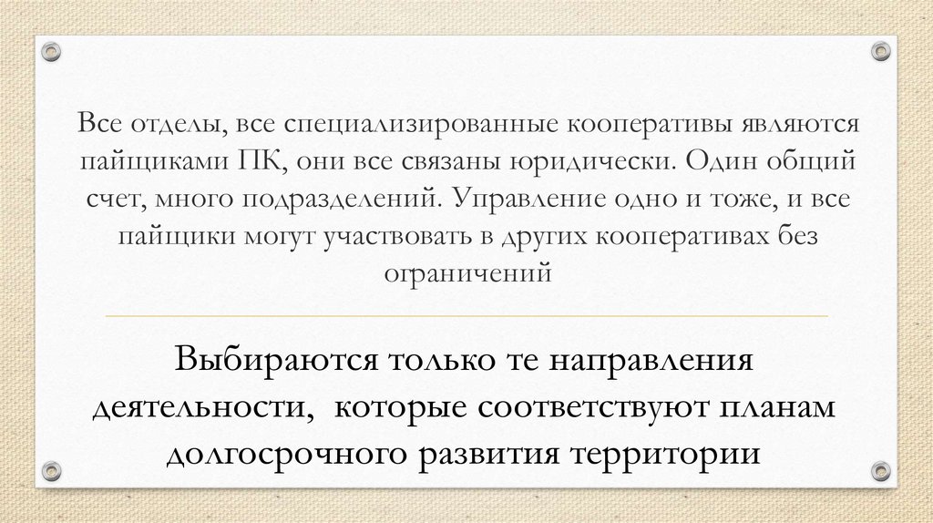 Все отделы, все специализированные кооперативы являютсяпайщиками ПК, они все связаны юридически. Один общий