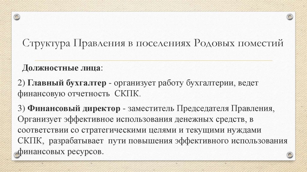 Структура Правления в поселениях Родовых поместийДолжностные лица: