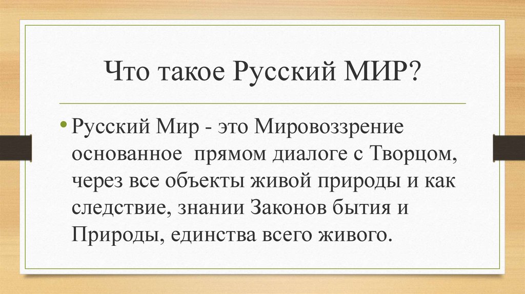 Что такое Русский МИР?• Русский Мир - это Мировоззрение