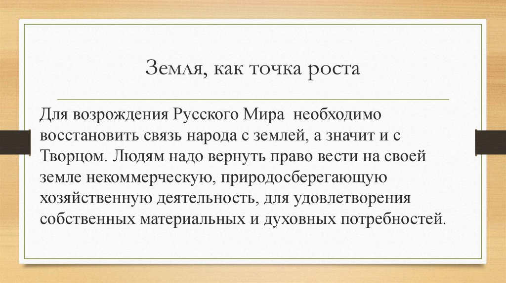 Земля, как точка ростаДля возрождения Русского Мира необходимо