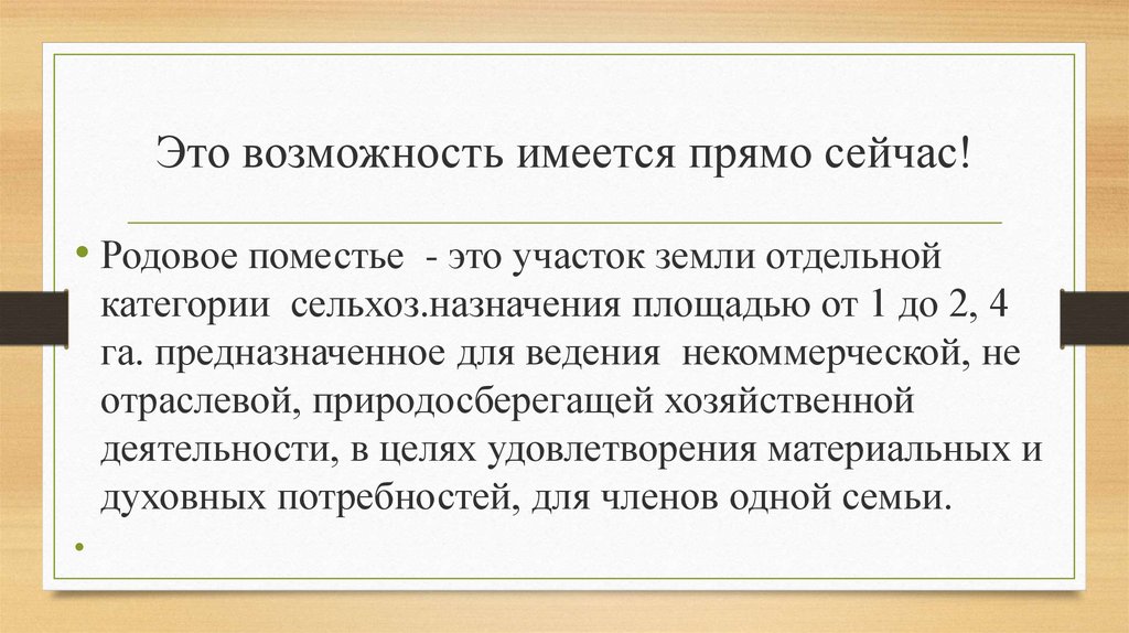 Это возможность имеется прямо сейчас!• Родовое поместье - это участок земли отдельной