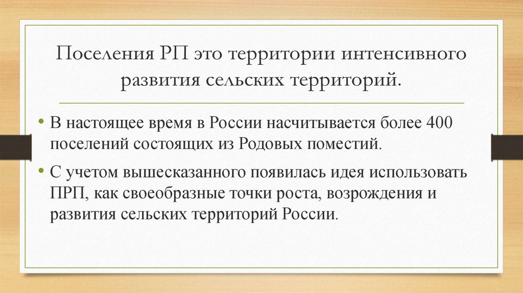 Поселения РП это территории интенсивногоразвития сельских территорий.