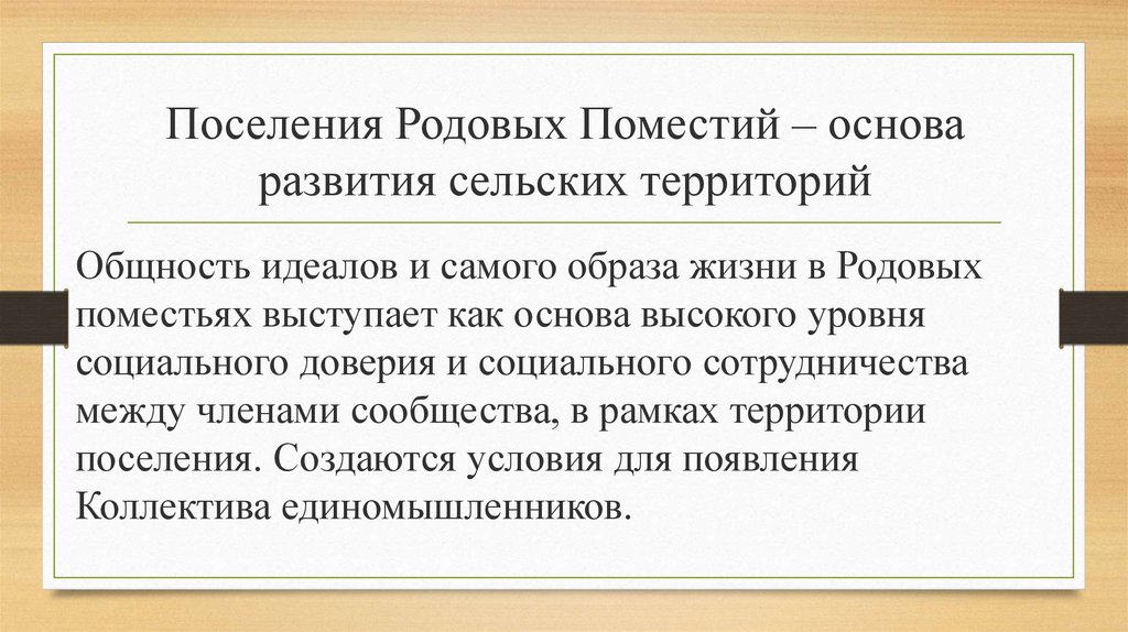 Поселения Родовых Поместий – основаразвития сельских территорий