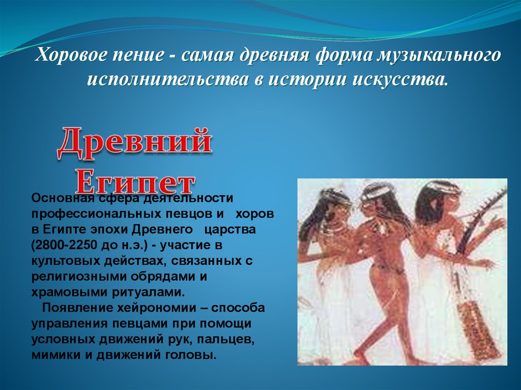 Хоровое пение - самая древняя форма музыкальногоисполнительства в истории искусства.