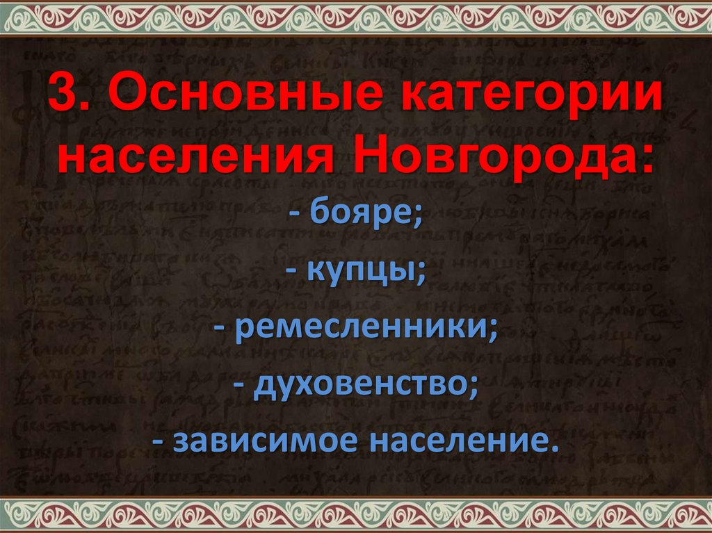 3. Основные категориинаселения Новгорода: