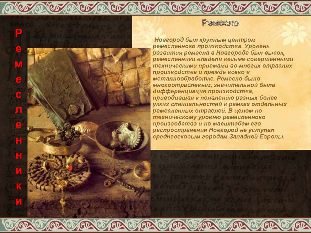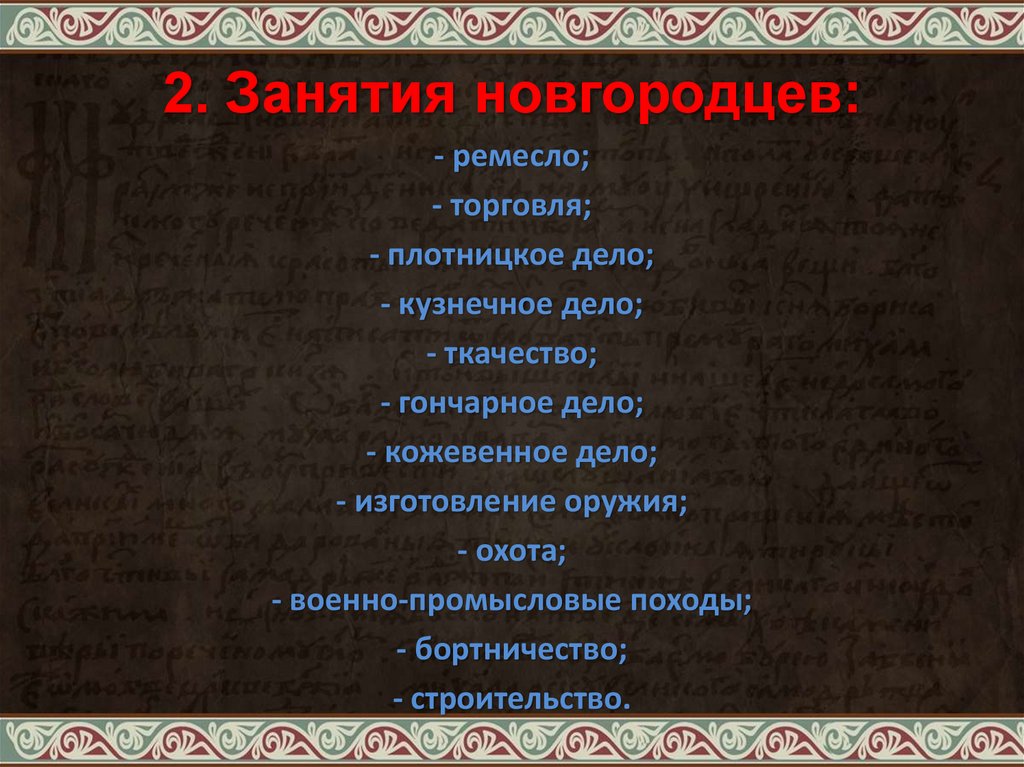 2. Занятия новгородцев:- ремесло;
