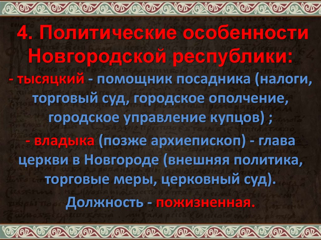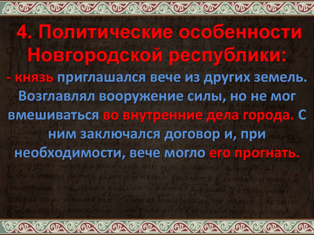 4. Политические особенностиНовгородской республики: