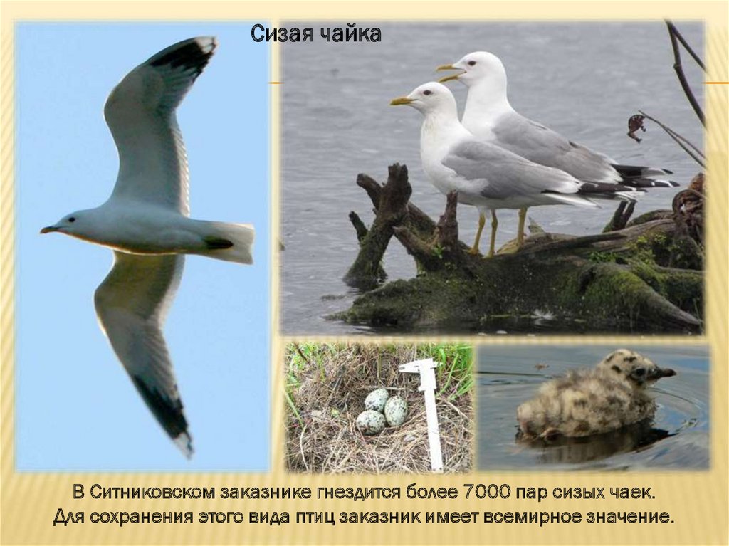 Сизая чайкаВ Ситниковском заказнике гнездится более 7000 пар сизых чаек.