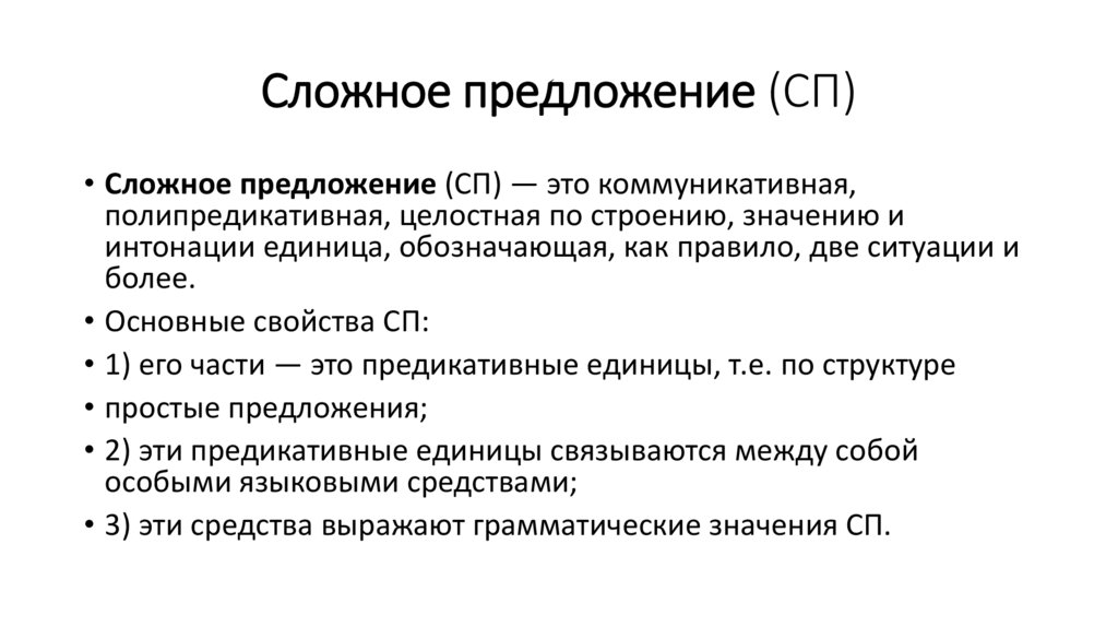 Сложное предложение (СП)• Сложное предложение (СП) — это коммуникативная,