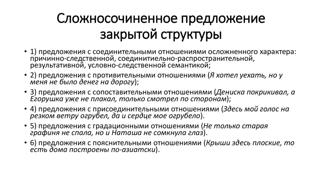 • 2)сложносочиненное предложение закрытой структуры, которые