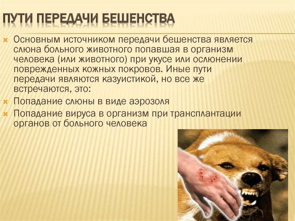 ПУТИ ПЕРЕДАЧИ БЕШЕНСТВАОсновным источником передачи бешенства является