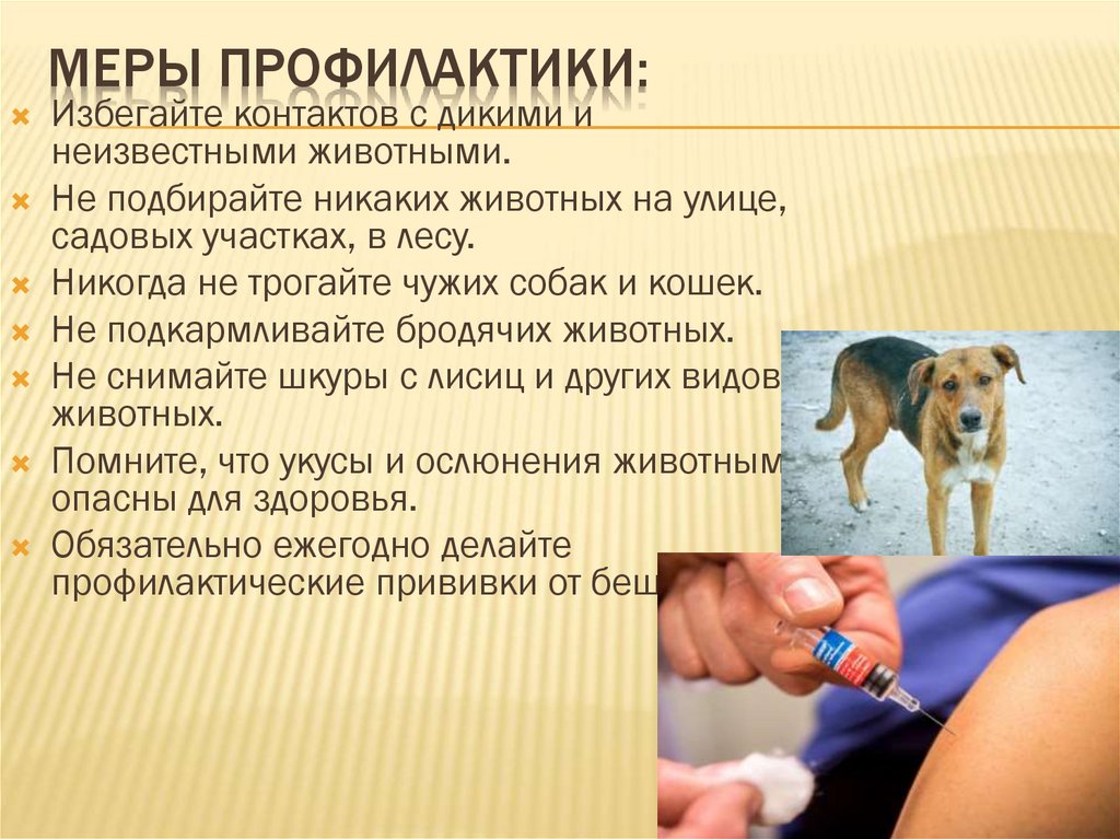 МЕРЫ ПРОФИЛАКТИКИ:Избегайте контактов с дикими и
