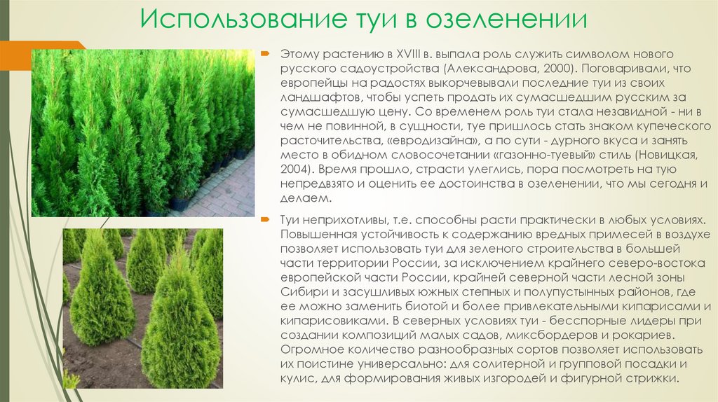 позволяет использовать туи для зеленого строительства в большей