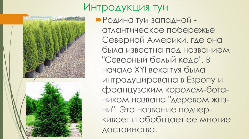 Интродукция туиРодина туи западной атлантическое побережье