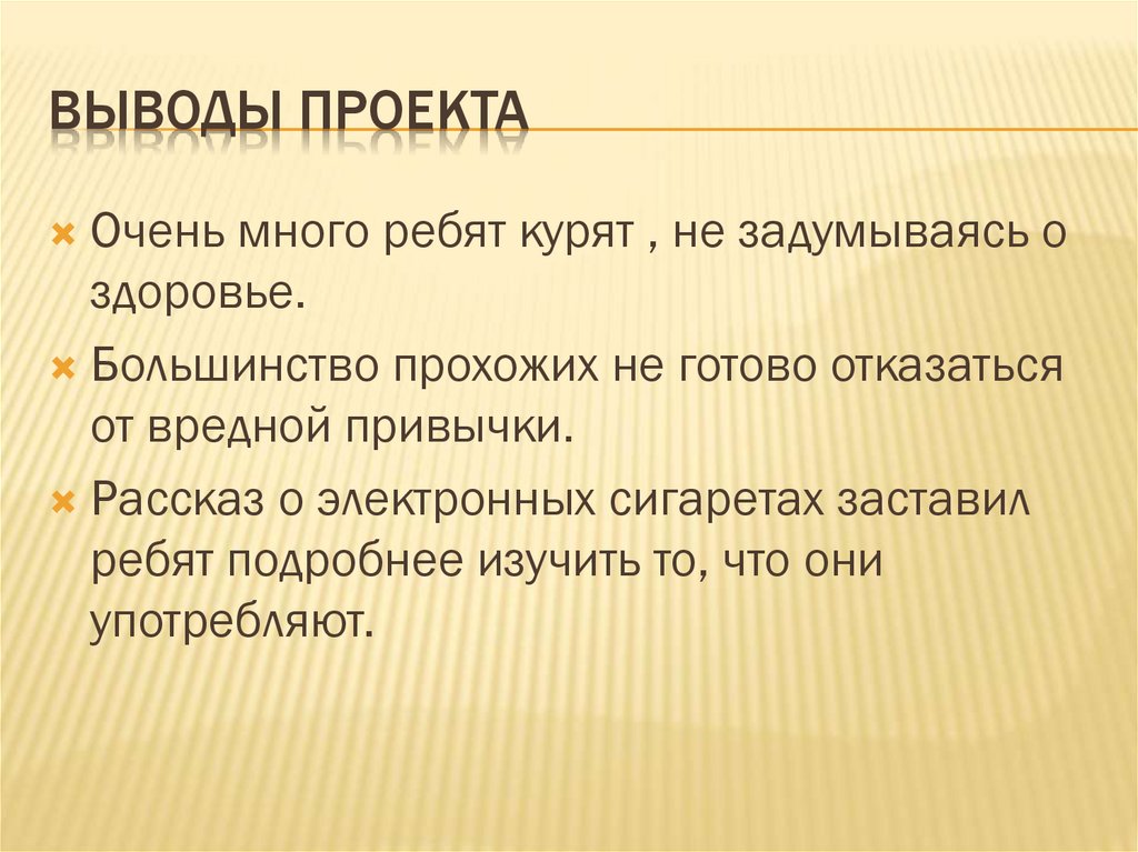 ВЫВОДЫ ПРОЕКТАОчень много ребят курят , не задумываясь о