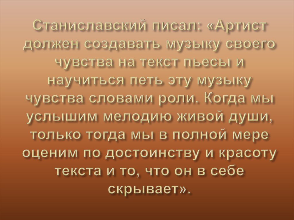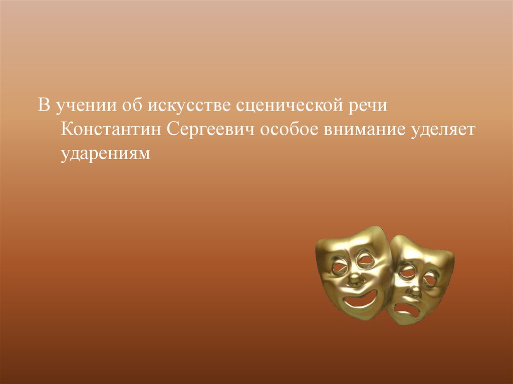 В учении об искусстве сценической речиКонстантин Сергеевич особое внимание уделяет