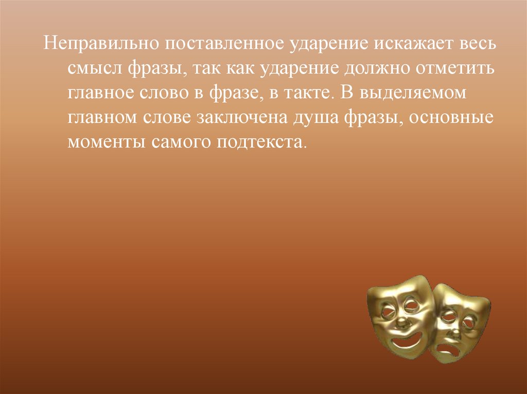 Неправильно поставленное ударение искажает весьсмысл фразы, так как ударение должно отметить