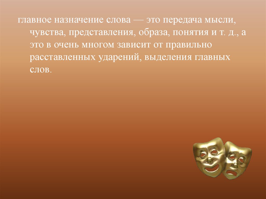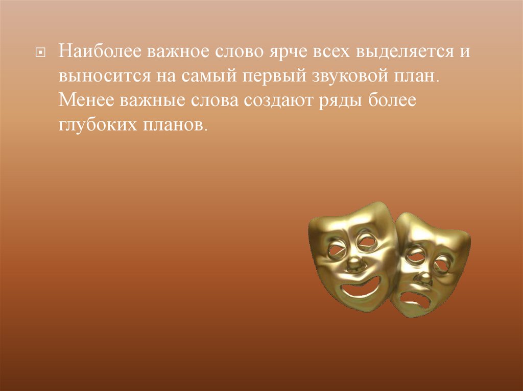 Наиболее важное слово ярче всех выделяется ивыносится на самый первый звуковой план.