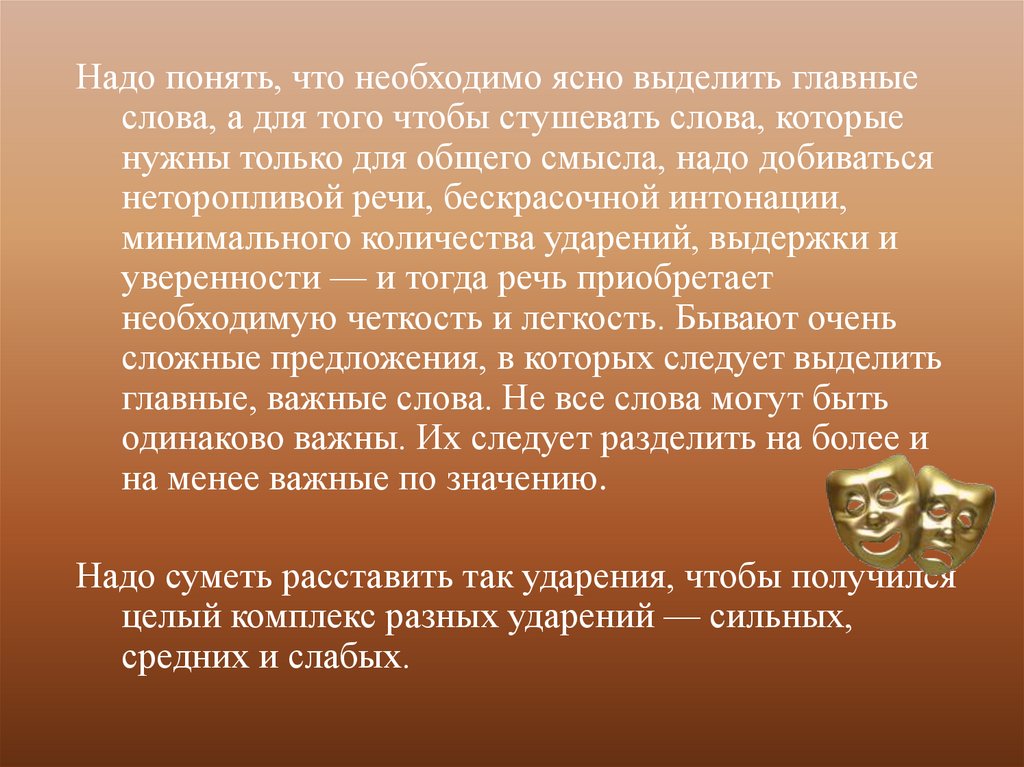 Надо понять, что необходимо ясно выделить главныеслова, а для того чтобы стушевать слова, которые