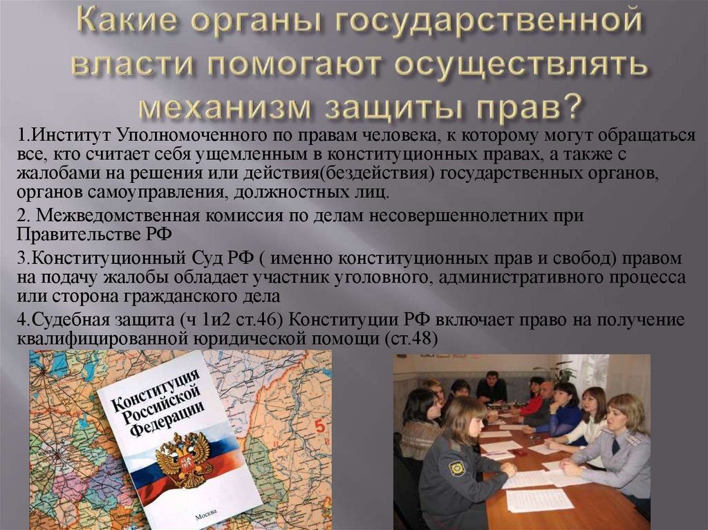 1.Институт Уполномоченного по правам человека, к которому могут обращатьсявсе, кто считает себя ущемленным в конституционных правах, а также с
