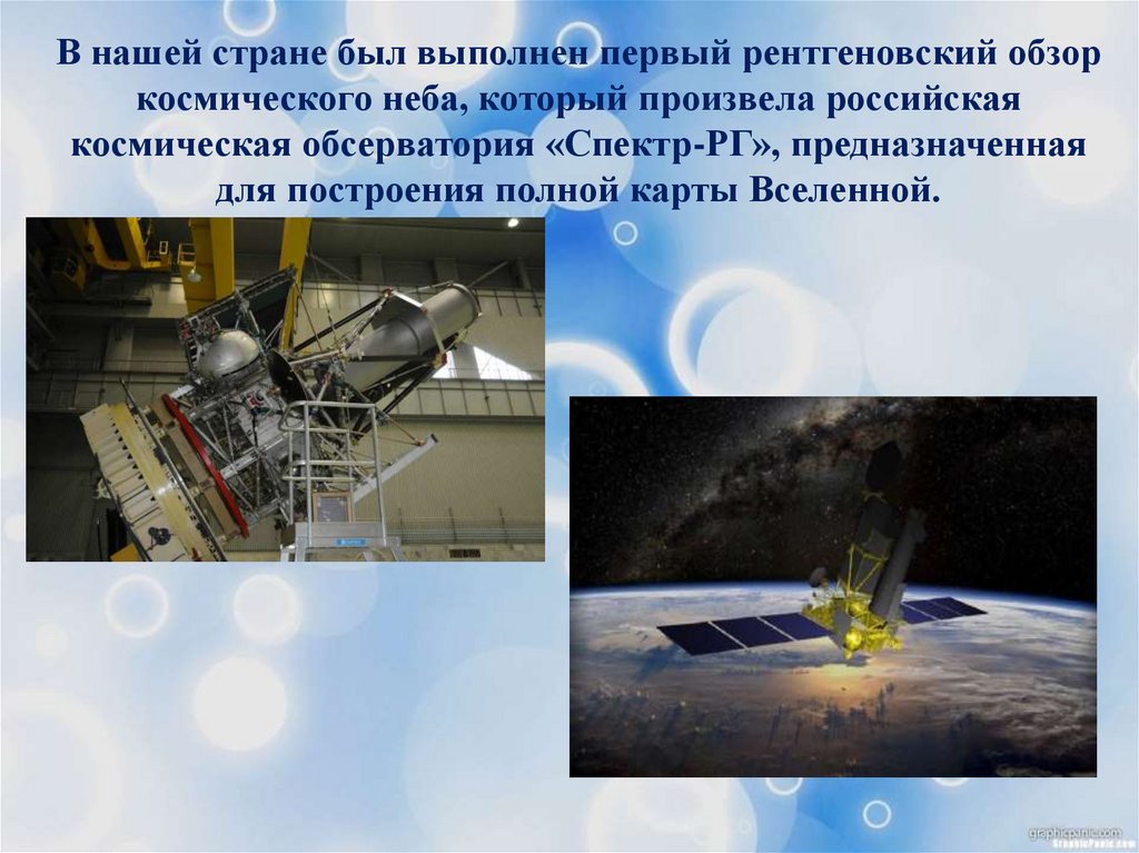 В нашей стране был выполнен первый рентгеновский обзоркосмического неба, который произвела российская