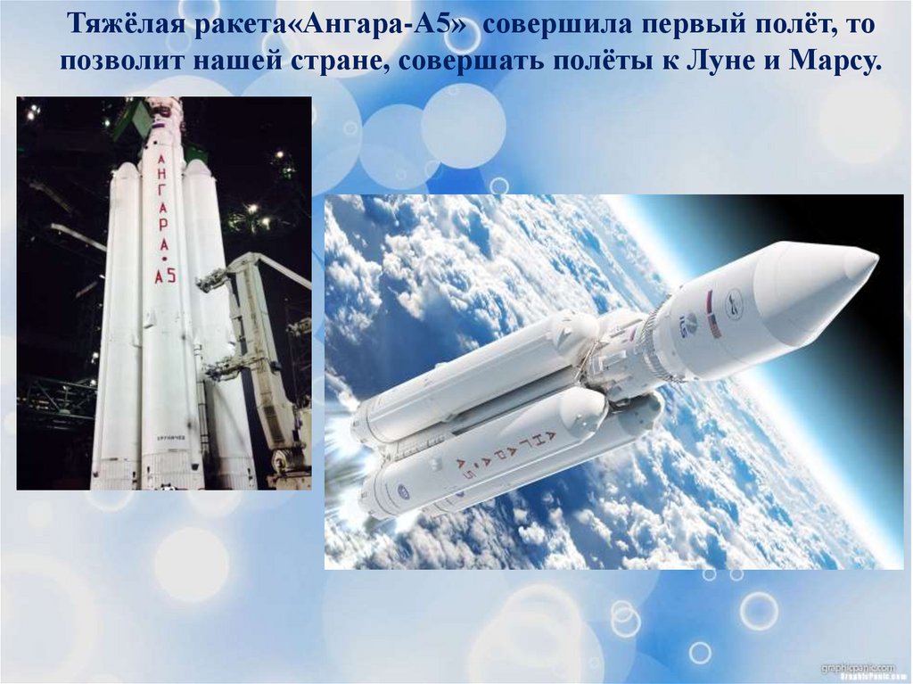 Тяжёлая ракета«Ангара-А5» совершила первый полёт, топозволит нашей стране, совершать полёты к Луне и Марсу.